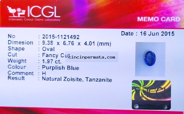 Detail : BATU PERMATA NATURAL TANZANITE BERSERTIFIKAT.