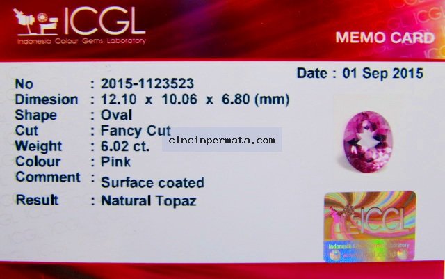 Detail : BATUPERMATA PINK TOPAS BERSERTIFIKAT