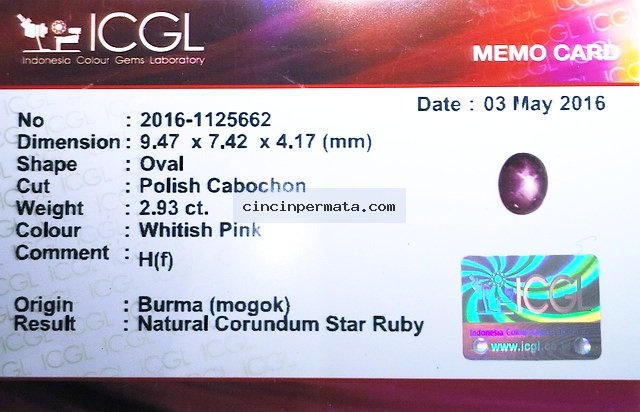 Detail : CINCIN PERMATA RUBY BURMA DELIMA STAR