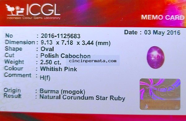 Detail : CINCIN RUBY BURMA STAR BERSERTIFIKAT